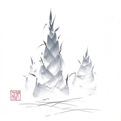 Бамбук — одна из основополагающих тем в японской традиционной живописи, как по смысловому значению, так и с точки зрения технических аспектов живописи тушью.