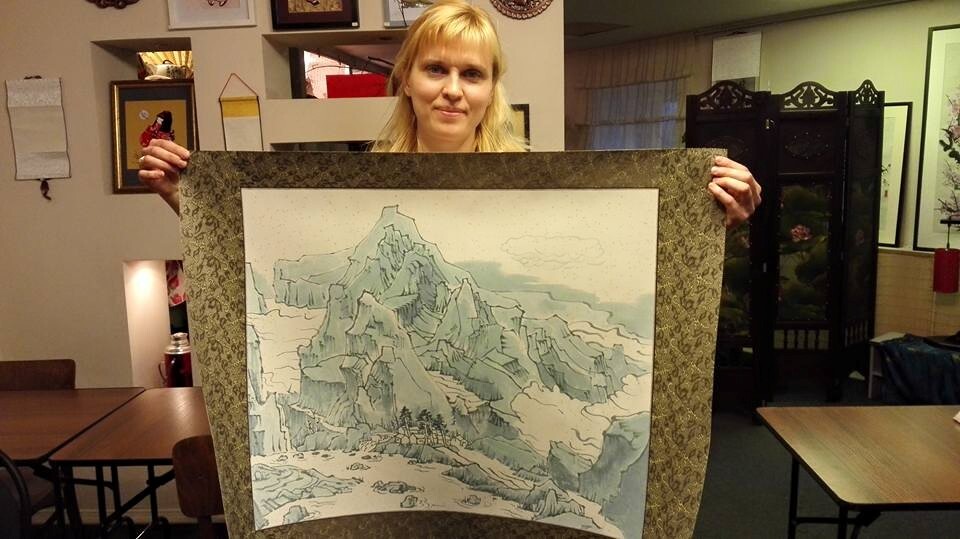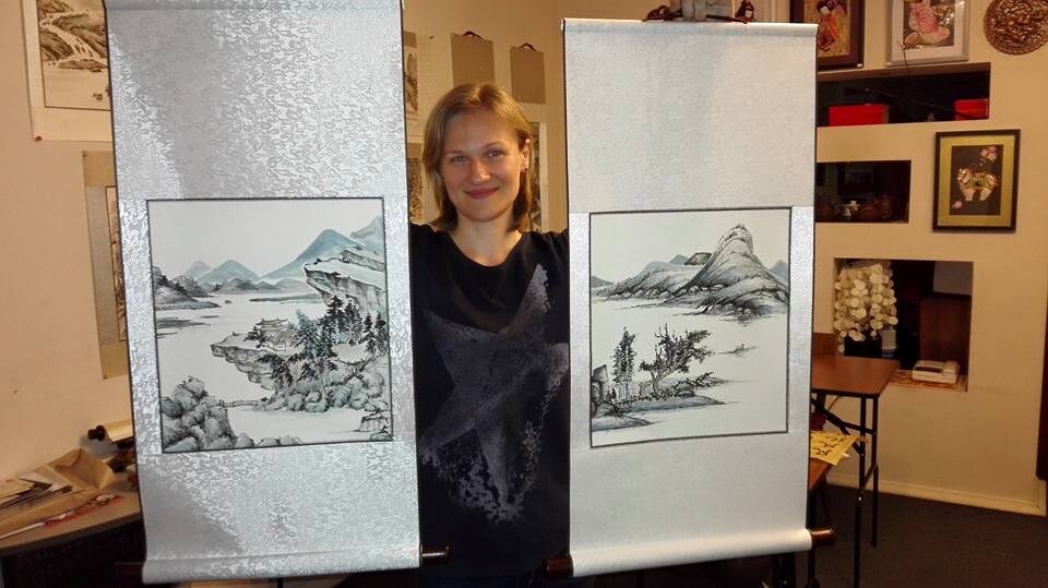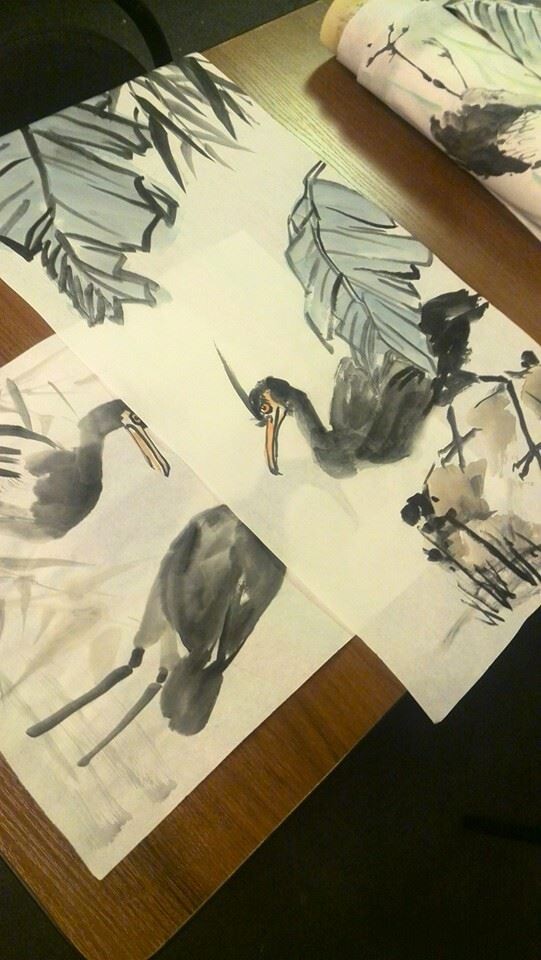 - множество выполненных самостоятельно учебных работ в стиле китайской живописи СЕ-И