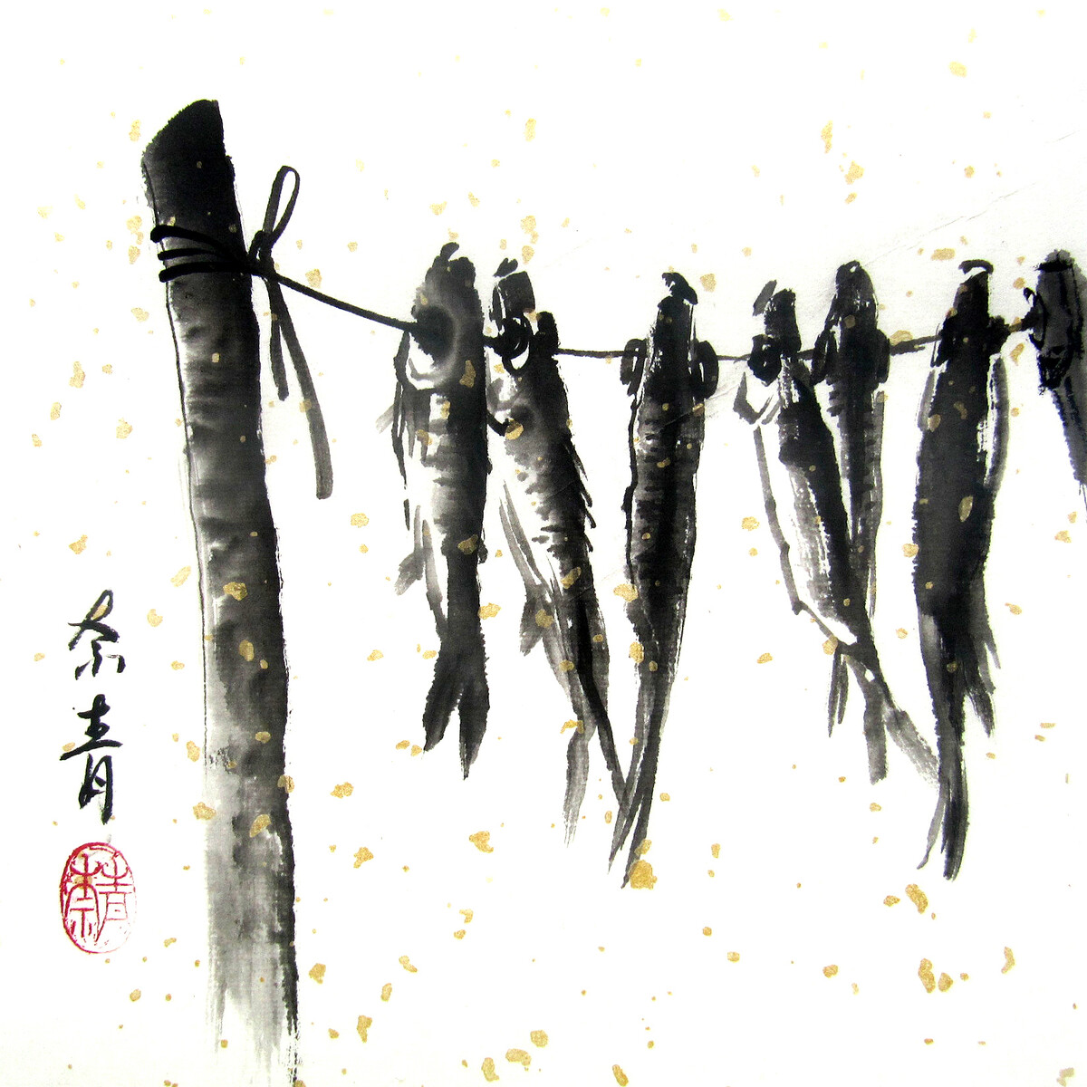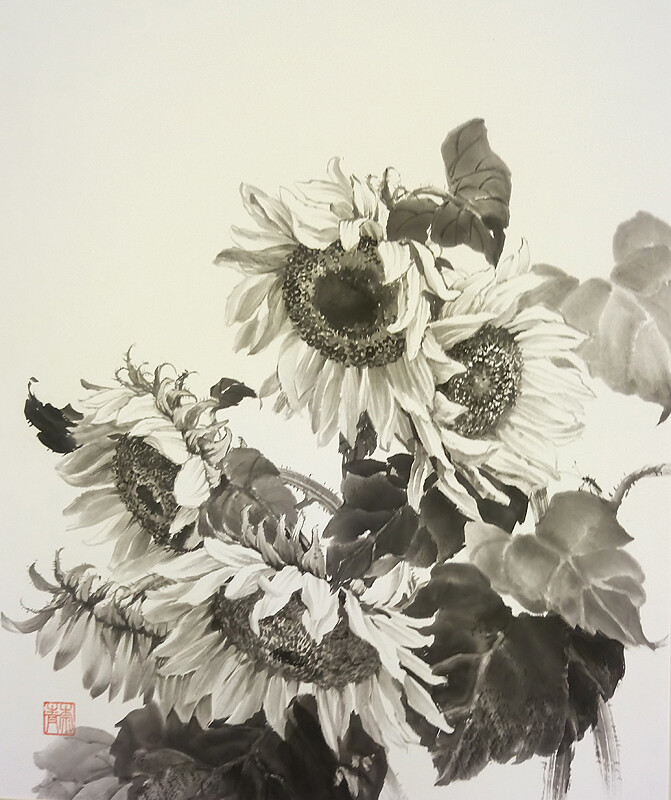 Самостоятельно выполненные уникальные композиции в стиле японской живописи суми-э;
