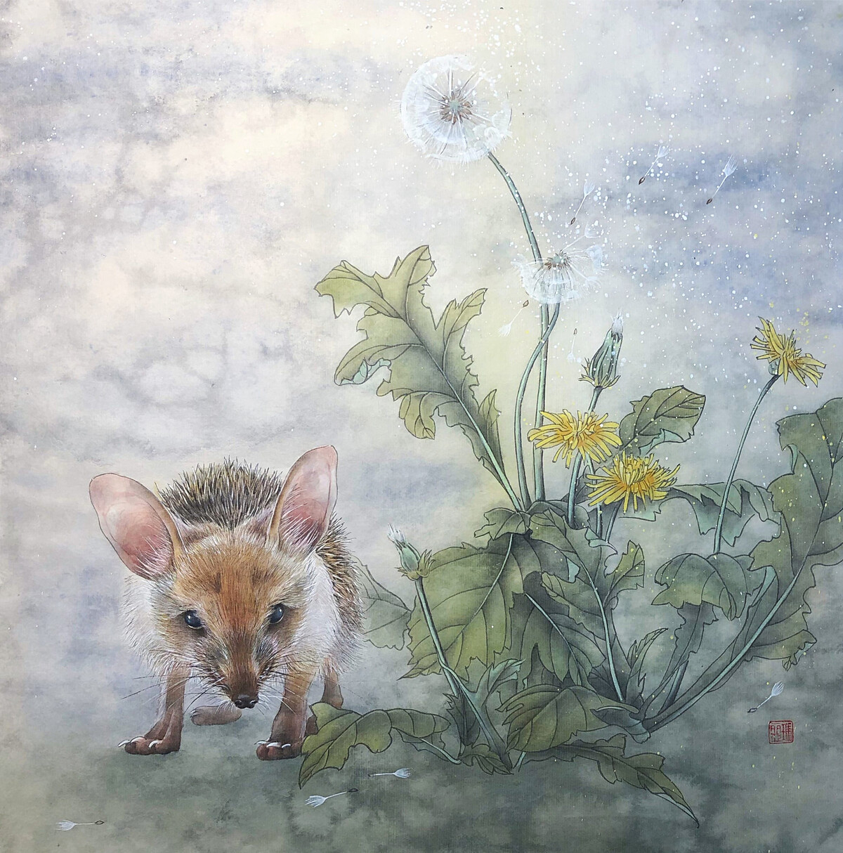 рисуем ёжика, одуванчик, делаем атмосферный волшебный фон!