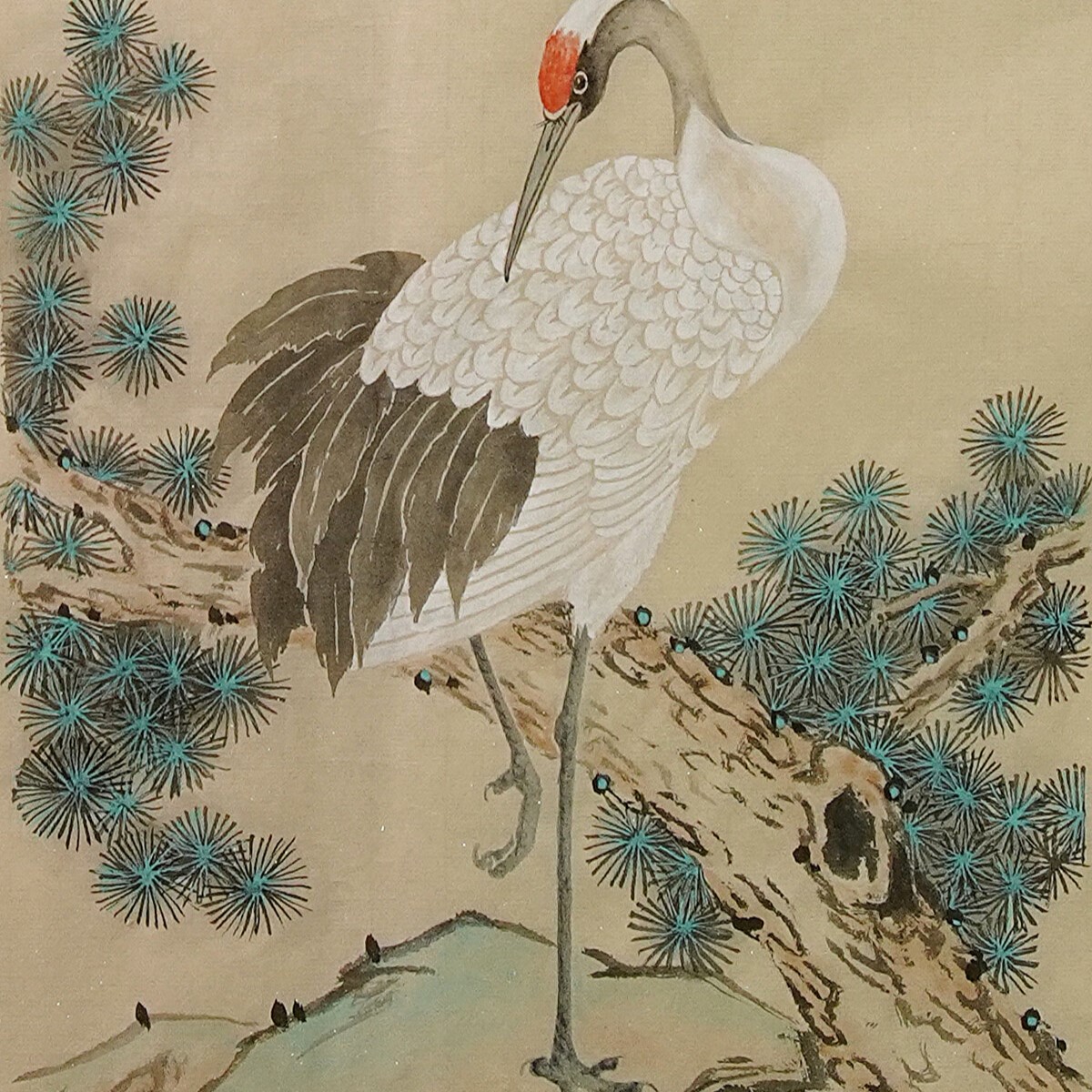 Журавль, так же как сосны и камни, символизирует долголетие, а также мудрость. Иероглиф 鹤 (пиньин hè, «журавль») выступает омофоном для иероглифа 合 (пиньин hé, «мир, гармония»).