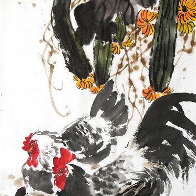 Создадим несколько больших картин с петухами, курами и цыплятами, вдохновляясь классиками и современными мастерами.