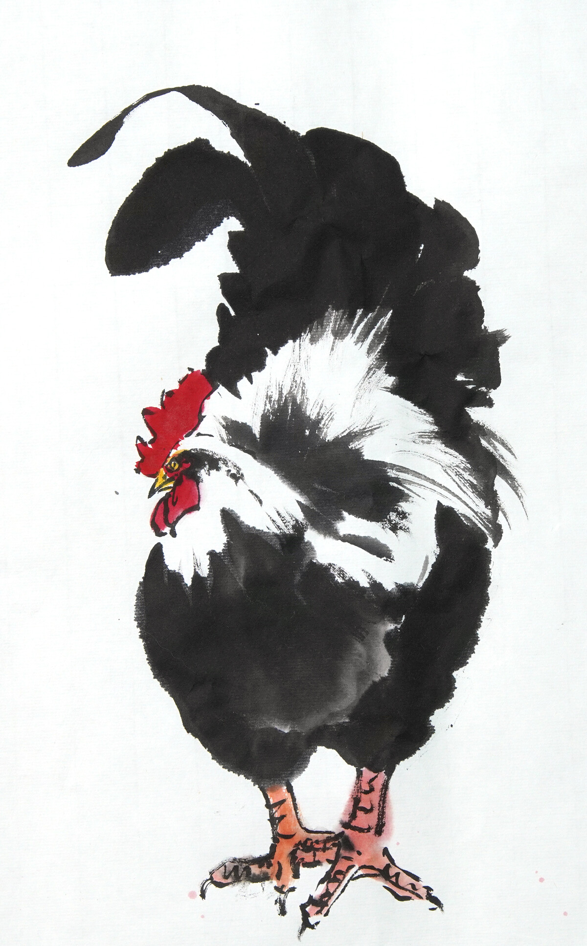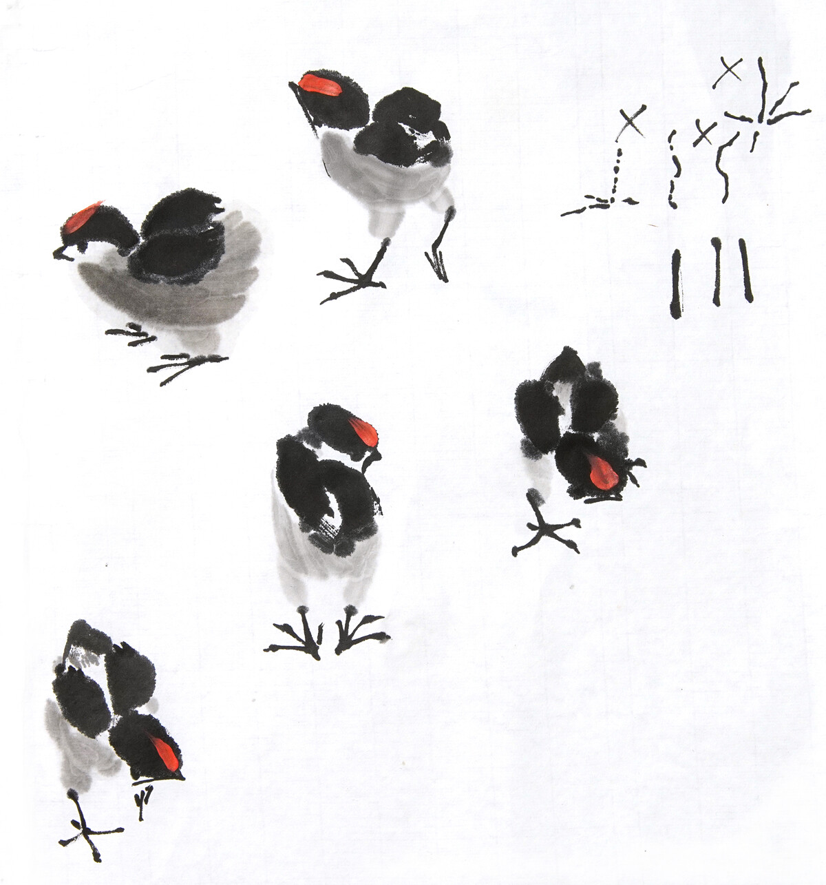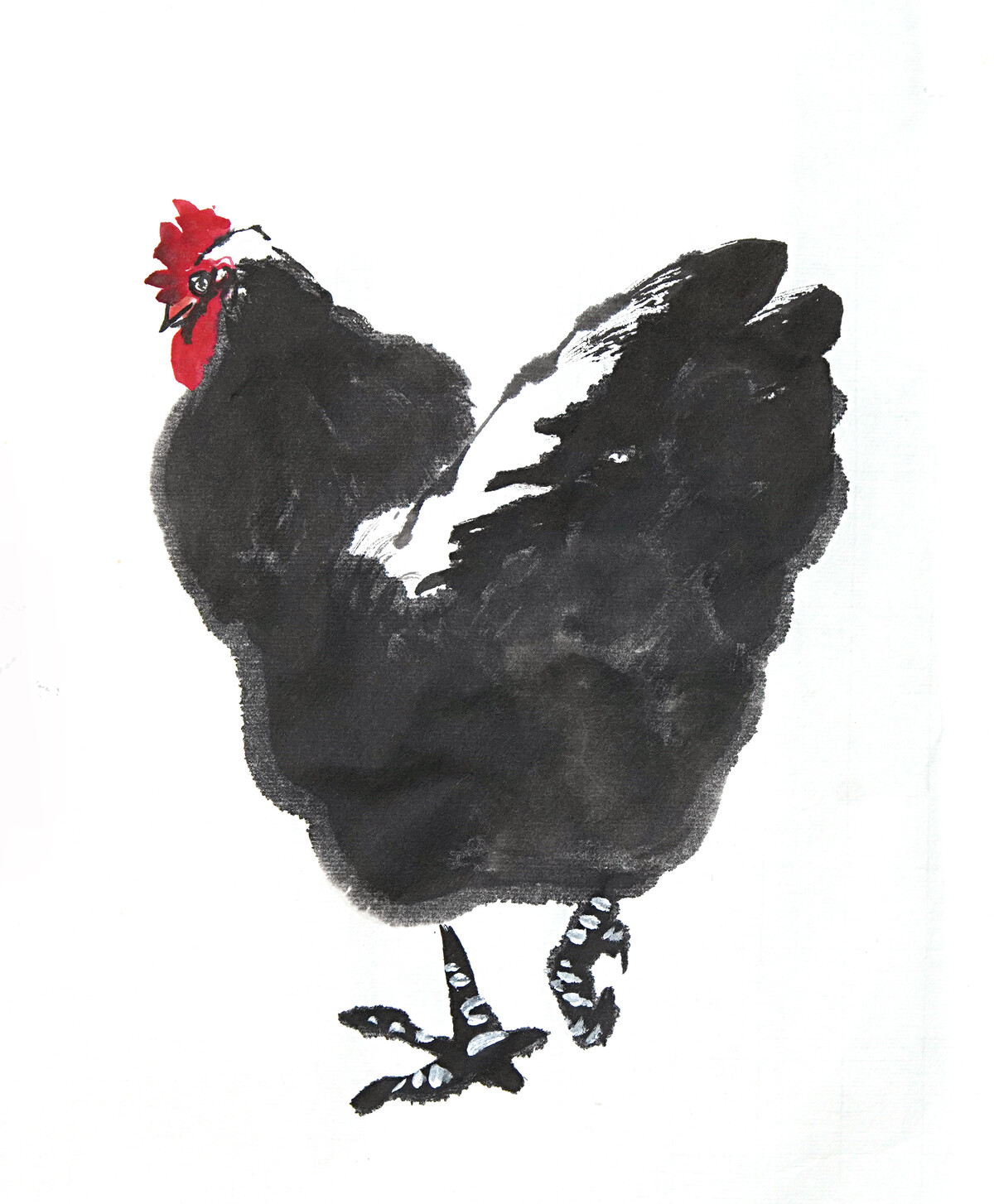 Нарисуем кур, петухов и цыплят пятнами, без контура, в разных ракурсах.