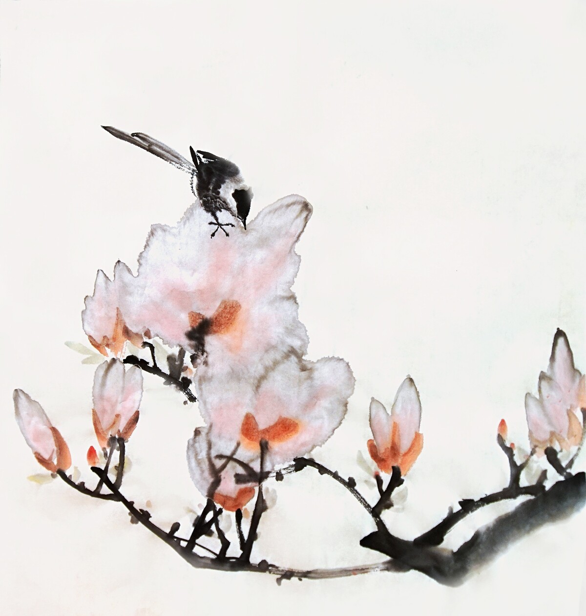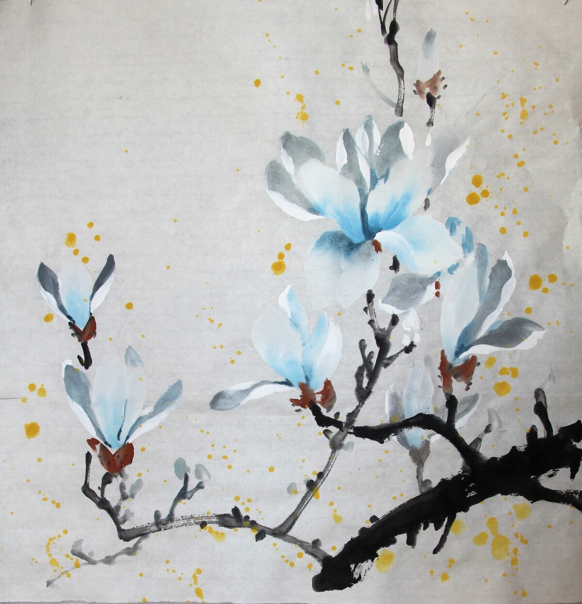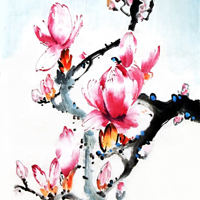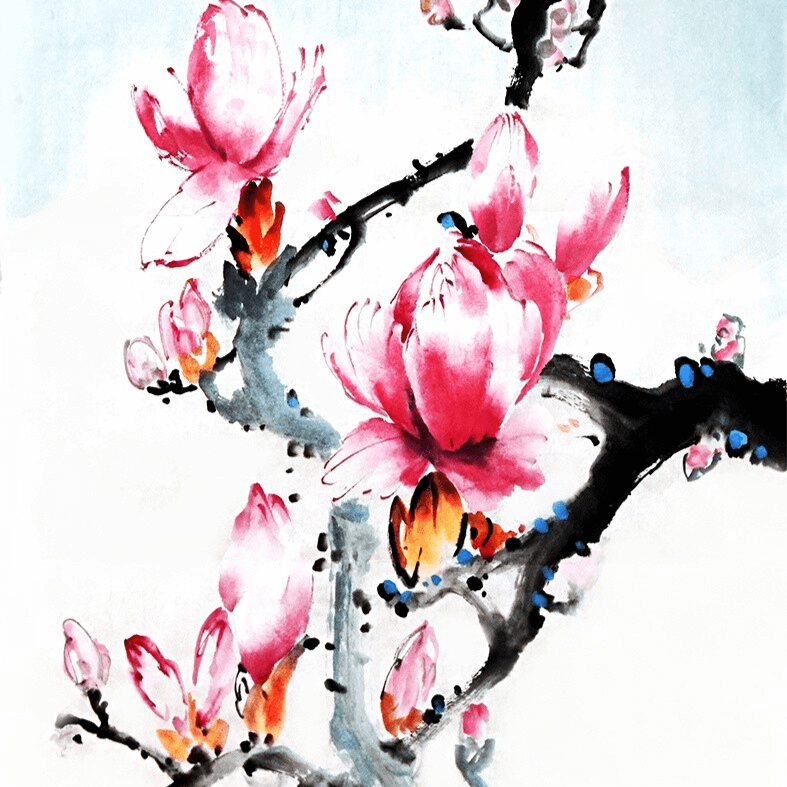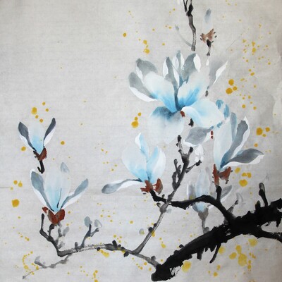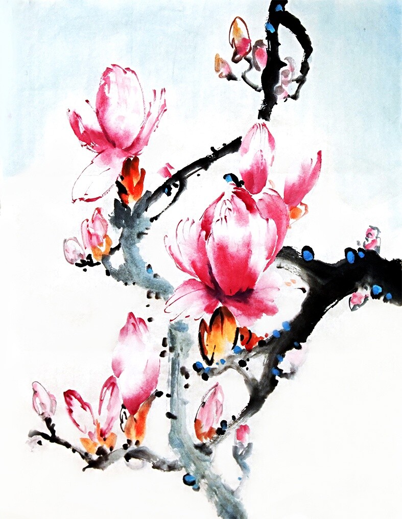 Эффектная и одновременно нежная и воздушная магнолия в стиле се-и, возможно ли это? Да! Современные техники китайской живописи позволят нарисовать яркие и живые цветы, которые непременно станут украшением дома. Это будет свежо и похоже на пойманный момент пробуждения весны и жизни.