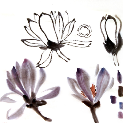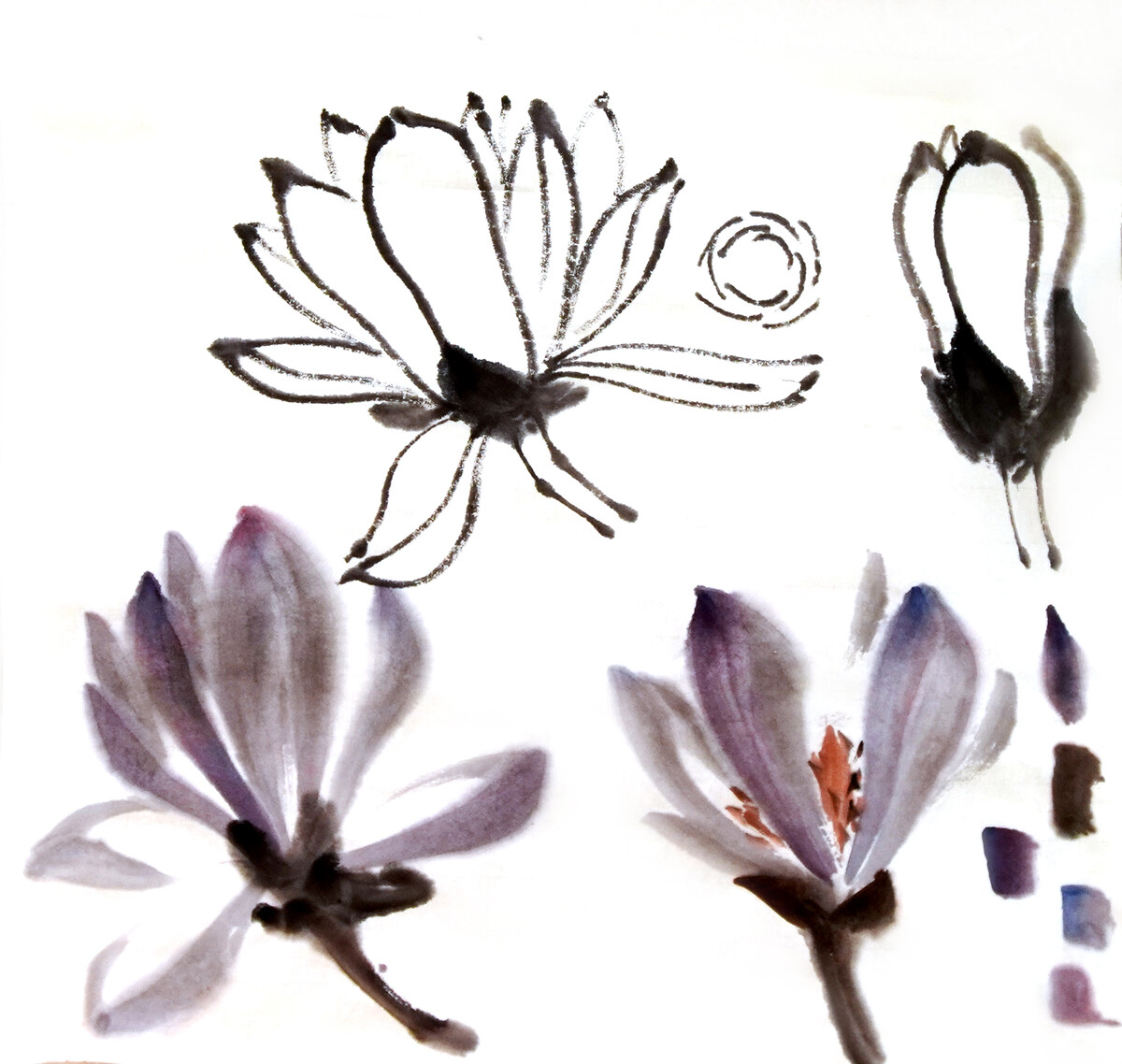 - Учимся рисовать цветы магнолии контуром, пятном, тушью и цветом.