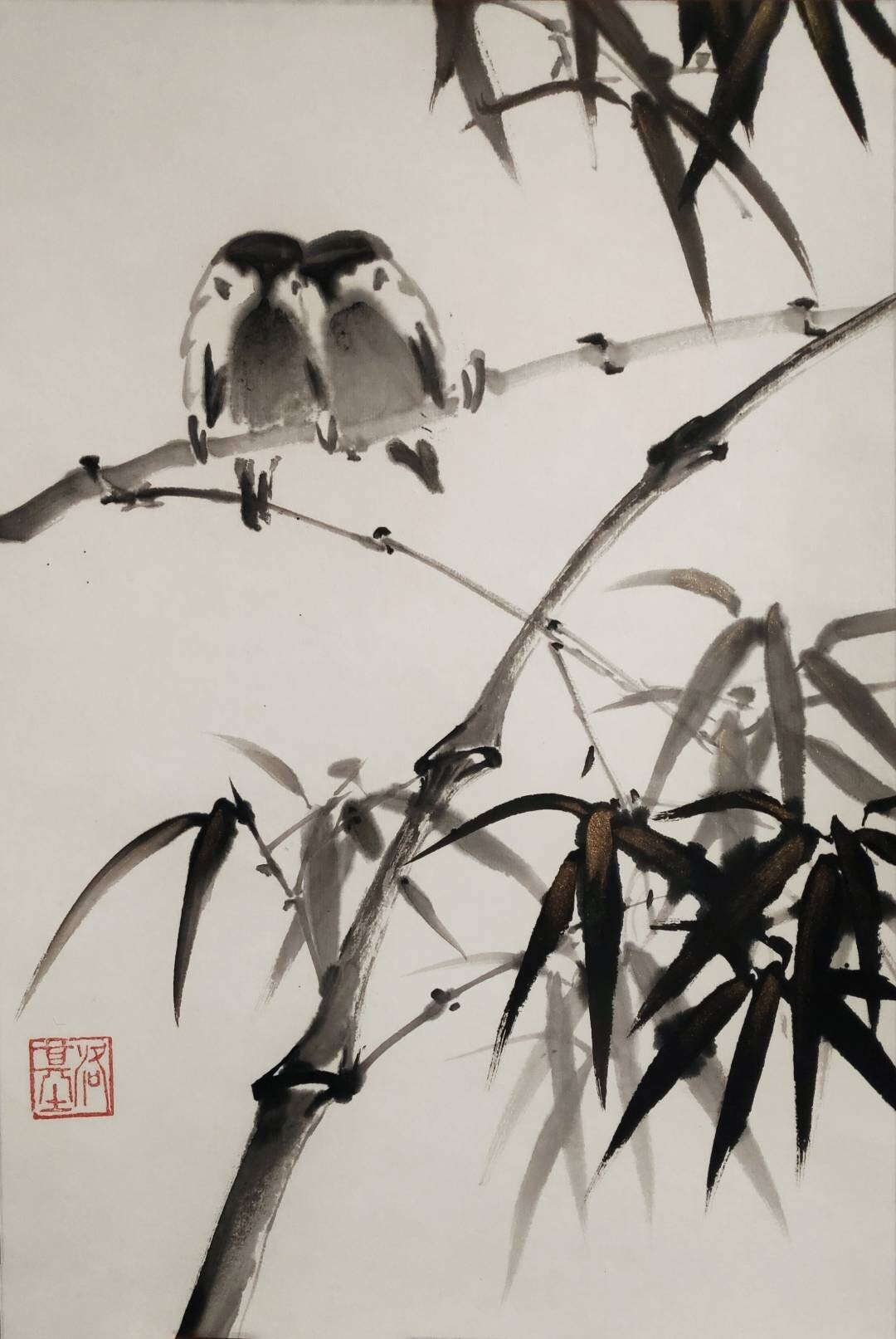 Самостоятельно выполненные уникальные композиции в стиле китайской живописи се-и;