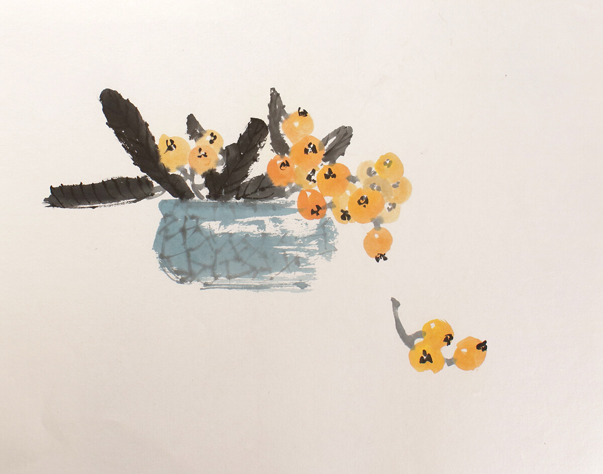 На онлайн-уроках мы погрузимся в волшебную атмосферу китайской живописи. Под руководством преподавателя освоим технику изображения мушмулы - любимого сюжета Ци Байши и У Чаншо. Напишем несколько картин в стиле китайской живописи СЕ-И