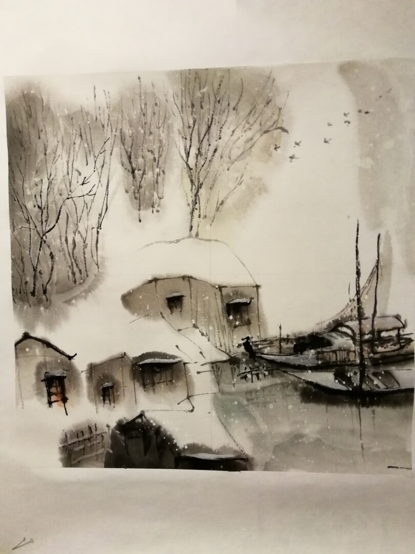 - В совершенстве освоим работу с линией и контуром на «текучей» рисовой бумаге, изучим технику изображения основных элементов пейзажа – лодок, строений, деревьев, растений и т.п.;
