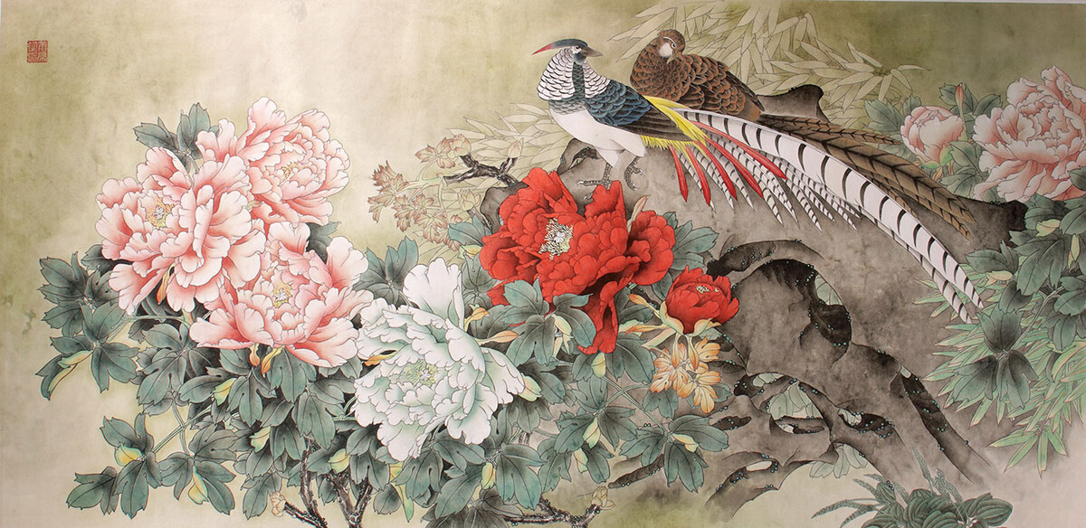Тот самый пион, с которого многие гунбисты в Китае и в других странах начинают свой путь в освоении сложного и изысканного стиля живописи ГУНБИ.