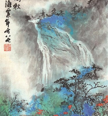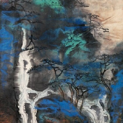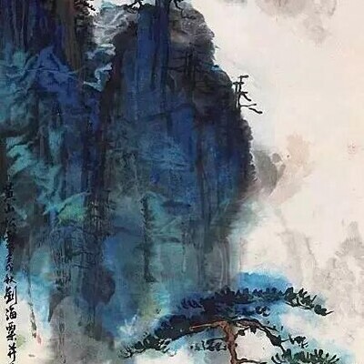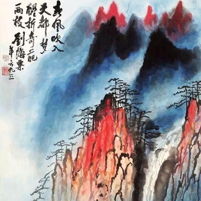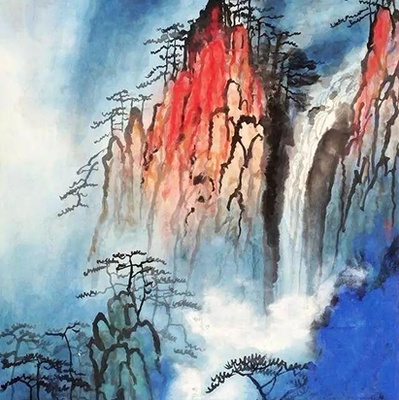 Приемы классического китайского пейзажа и сочетание традиционных элементов с цветными пятнами и брызгами.
