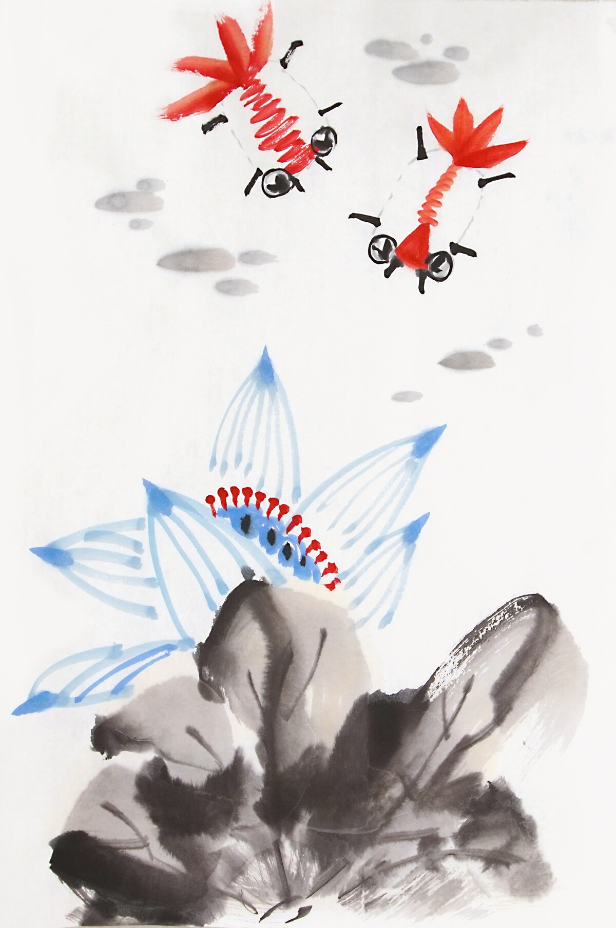 - Далее мы продолжим погружение в разнообразный мир китайских приемов рисования смешных рыб.