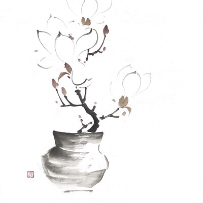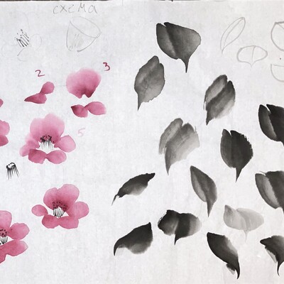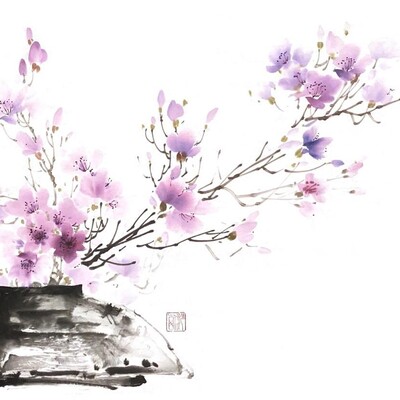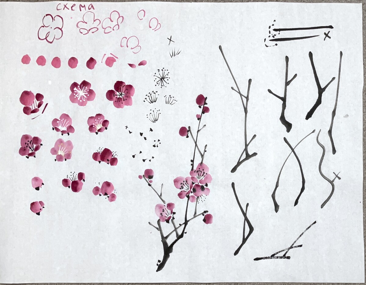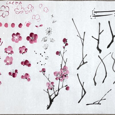 Знакомимся с японской живописью и создаем легкие весенние композиции с цветами.