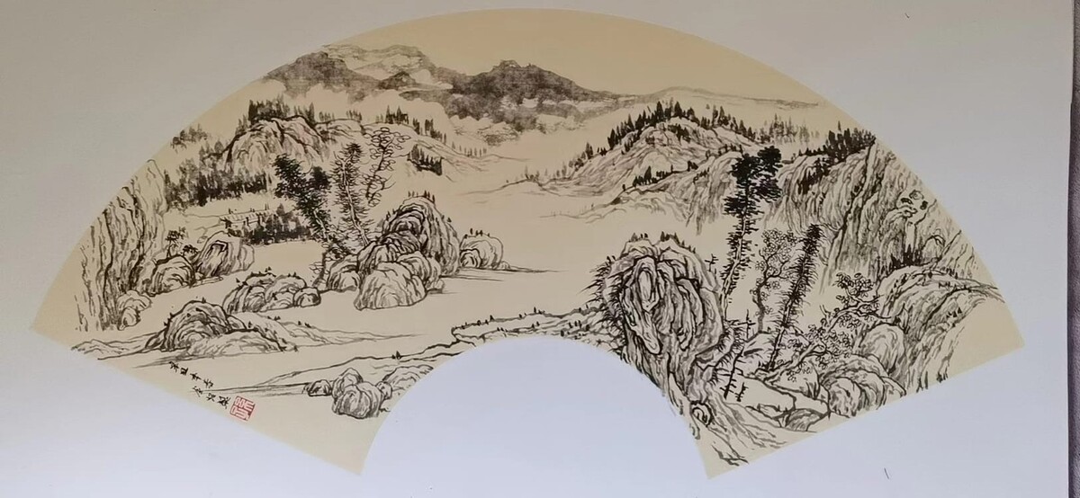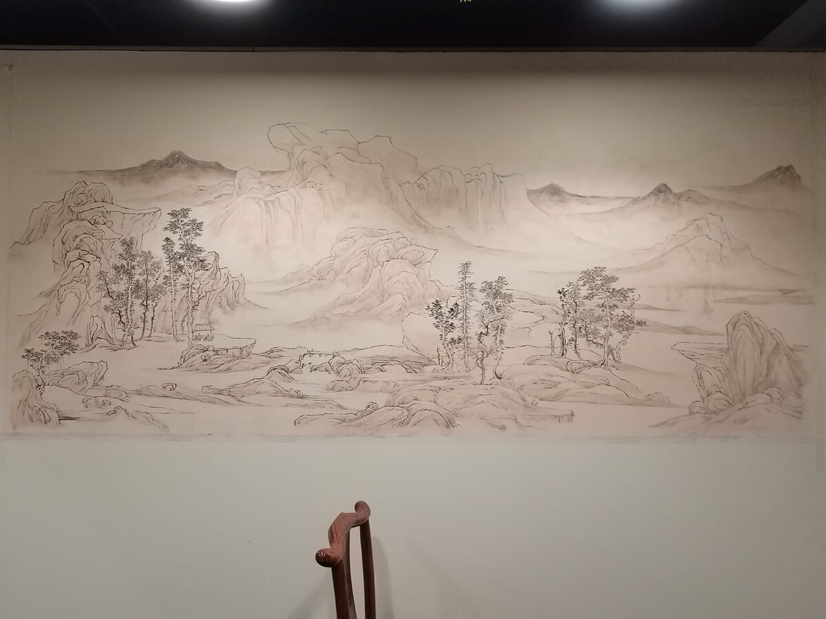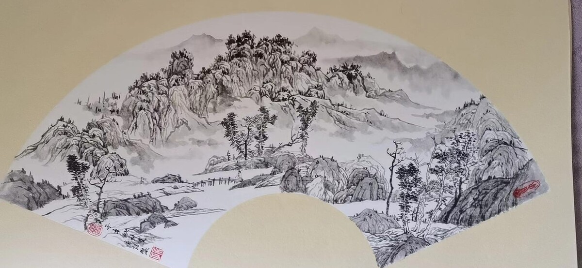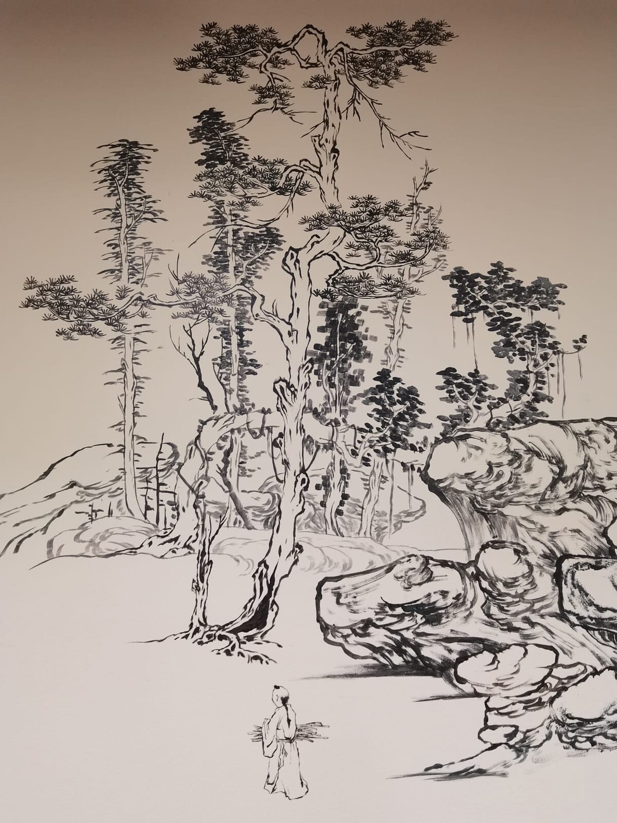 📍Самостоятельно выполненная атмосферная картина в стиле китайской пейзжной живописи