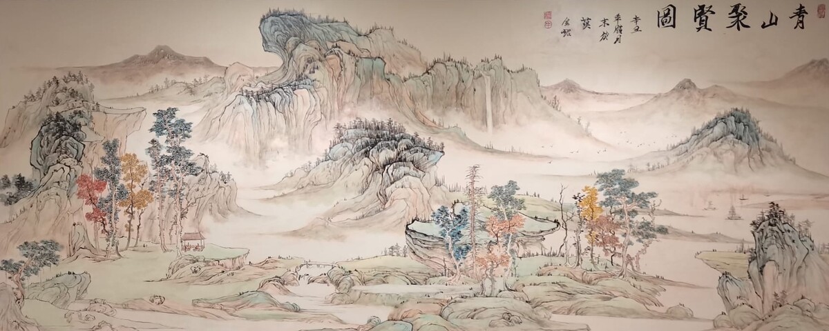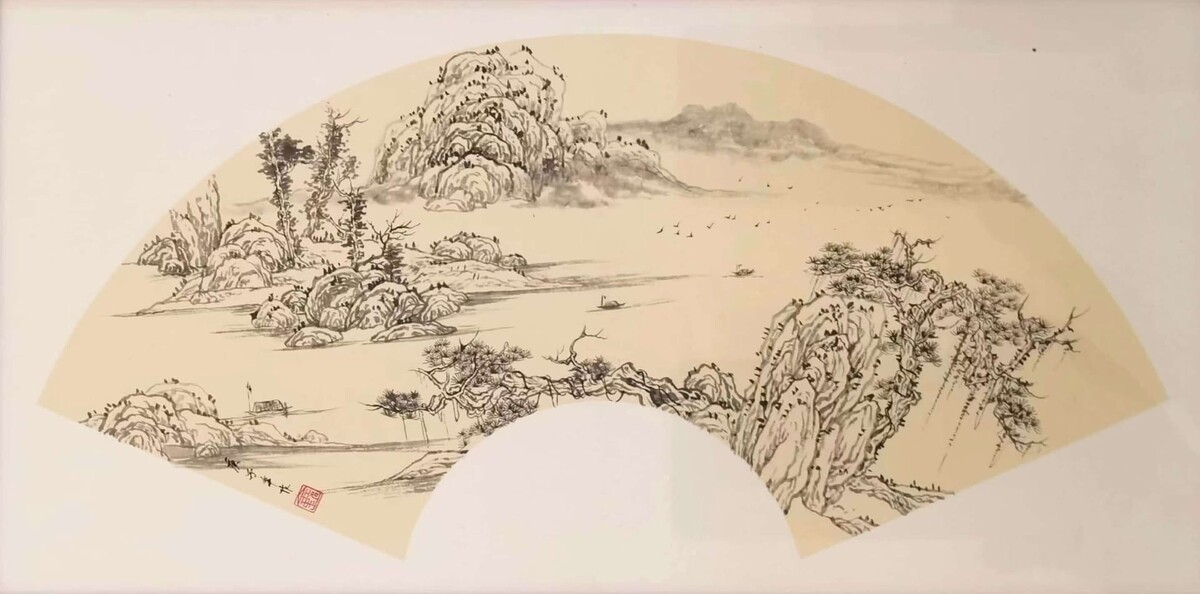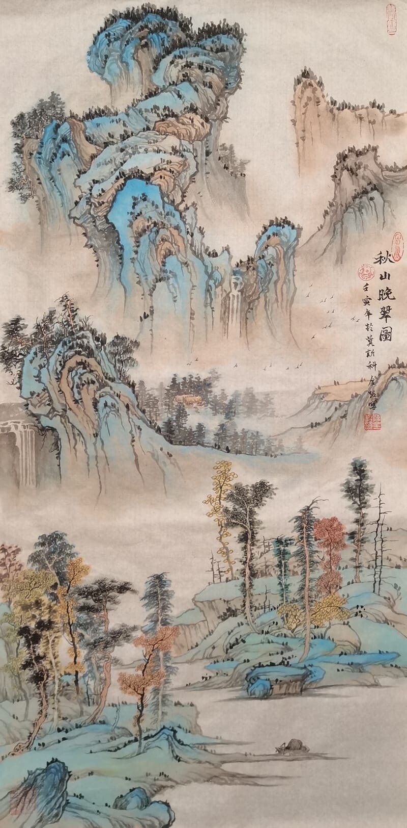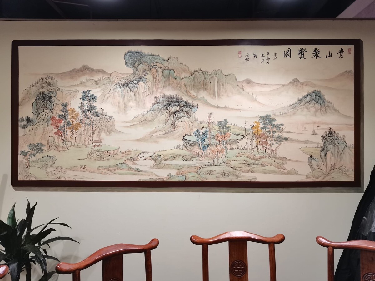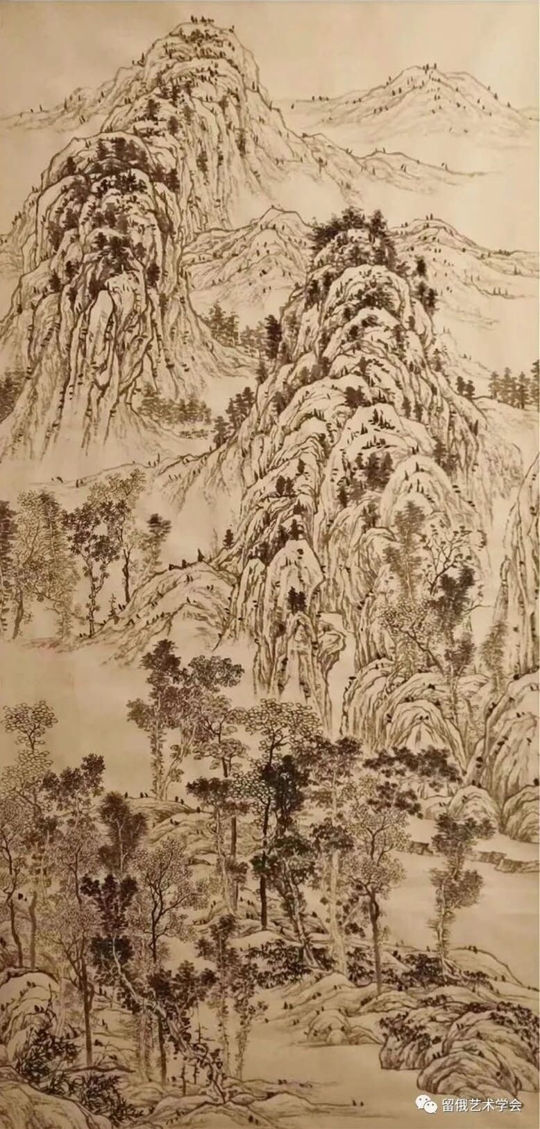 📍Самостоятельно выполненная атмосферная картина в стиле китайской пейзжной живописи