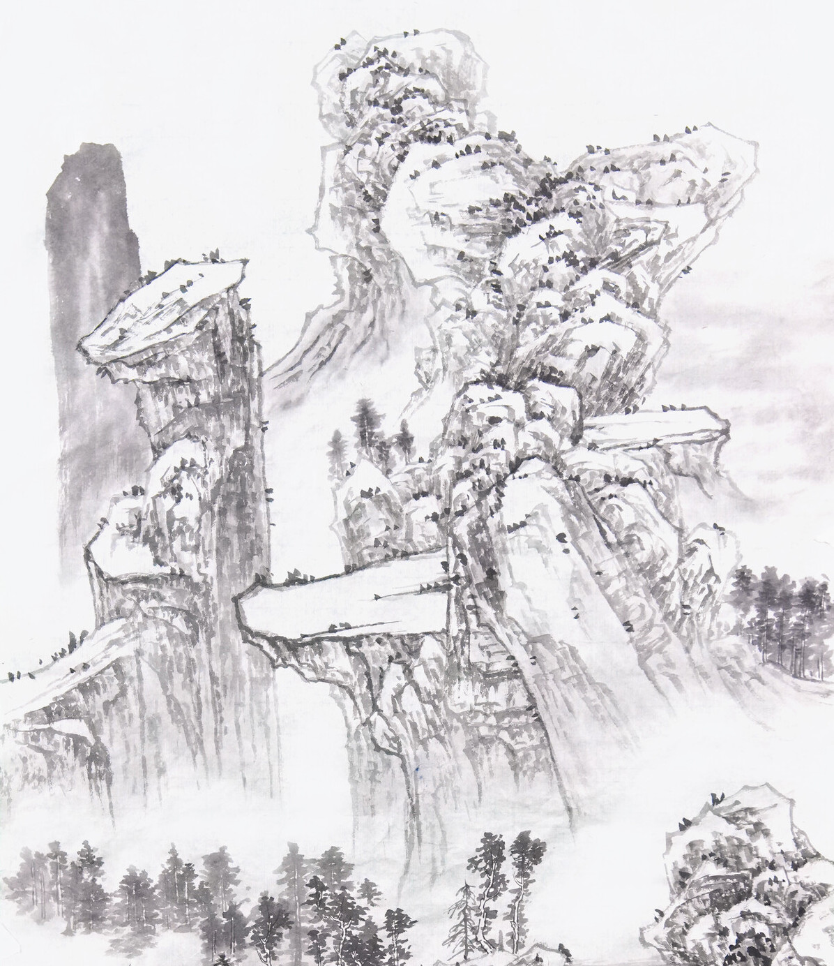 Онлайн-курс от китайского художника с переводом на русский язык. Рисуем большой многоплановый монохромный пейзаж в традиционной технике китайской живописи.