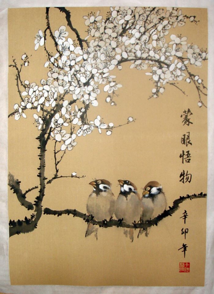Технически эти темы китайской живописи необходимо освоить всем тем, кто хочет работать в стиле се-и. Замысловатые линии лиан напоминают во многом смело написанные иероглифы, которые надо научиться со вкусом сочетать с яркими цветами минеральных красок.