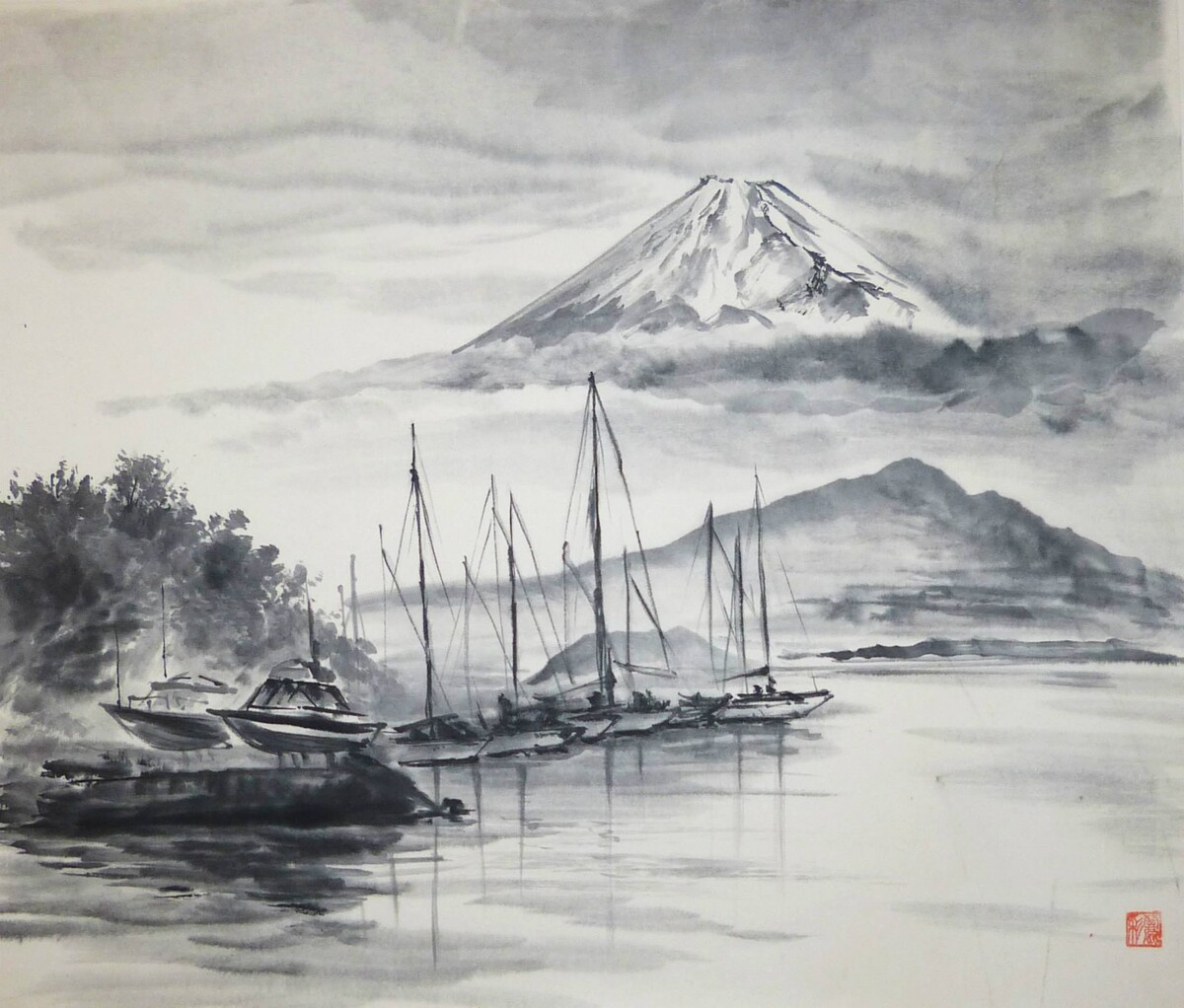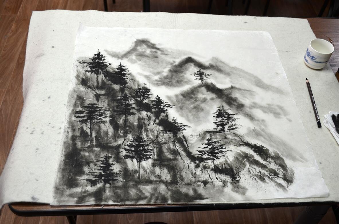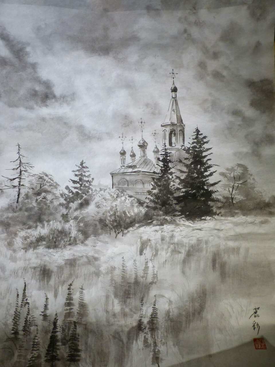 - десять написанные Вами картины в стиле японской живописи СУЙБОКУГА