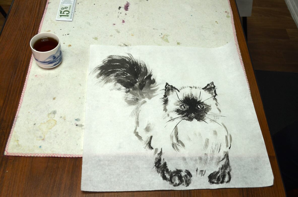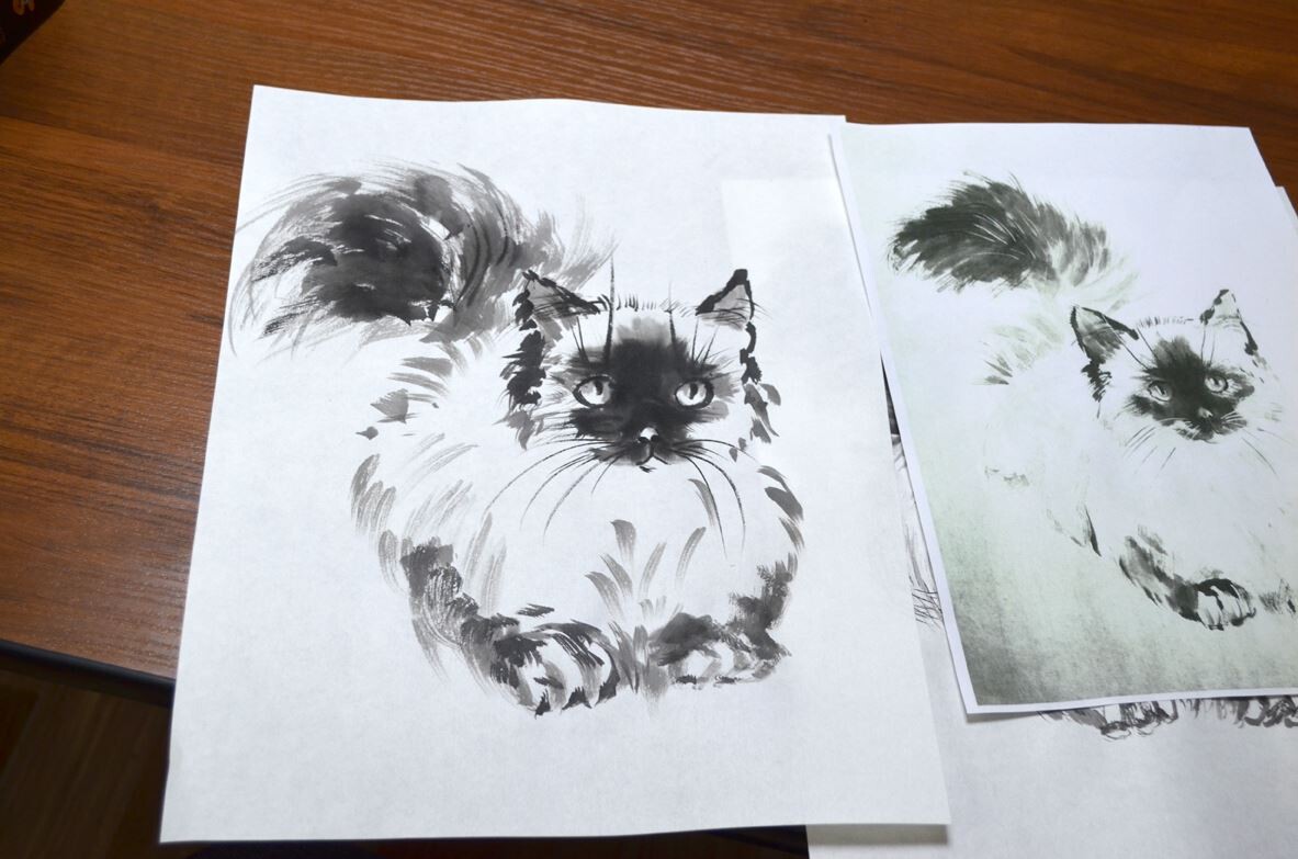 - урок - Рисуем кота, работая с растекаемостью туши